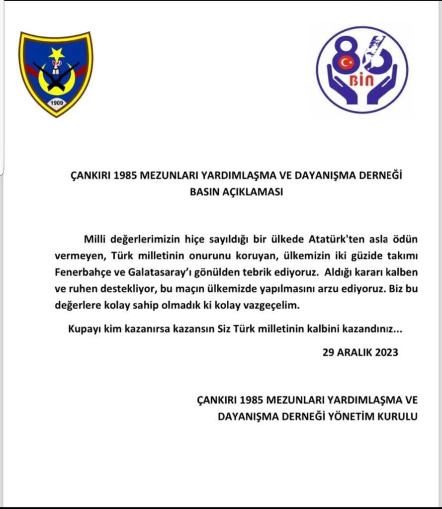 ÇANKIRI 1985 MEZUNLARI YARDIMLAŞMA VE DAYANIŞMA DERNEĞİNDEN BASIN AÇIKLAMASI