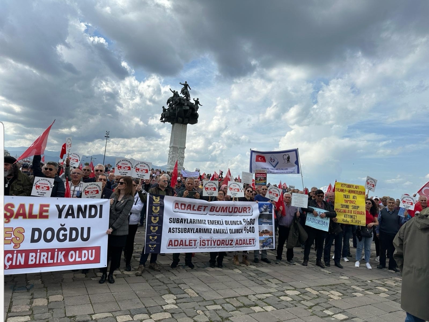 Emekli Astsubayların özlük haklarının iyileştirilmesi için 02 Mart 2024 Tarihi saat 13:00’de İzmir / Gündoğdu Meydanında organize edilen mitinge oldukça fazla katılım sağlanmıştır. Etkinliğe bir çok ilden gelen meslektaşlarımız ve devre arkadaşlarımız ile aileleri katılmış olup, sesimizin duyulması ile birlikte yaşadığımız sorunlar dile getirilmiştir. Bu faaliyete katılım sağlayan dernek üyelerimiz ve tüm meslektaşlarımıza teşekkür eder, mazeretleri nedeniyle katılım sağlayamayanları da sonraki etkinliklere bekliyor saygılar sunuyoruz.